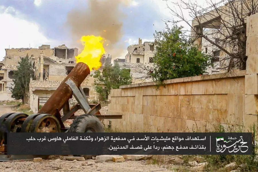 استهدف الثوار مواقع قوات الأسد في مدفعية الزهراء وثكنة #الفاملي هاوس غرب مدينة حلب بقذائف من مدفع جهنم، رداً على قصف المدنيين.