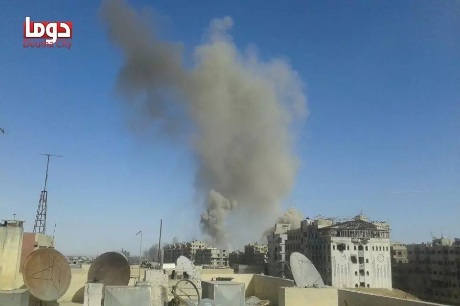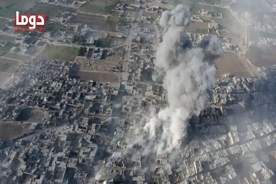 استهدفت قوات الأسد وروسيا الأحياء السكنية في مدينة دوما بالغوطة الشرقية بالأسلحة الكيميائية السامة، عبر استهدافها بقذائف وصواريخ محملة بالفوسفور والنابالم والمواد السامة كالكلور المركز في القذائف الصاروخية، حيث أكدت مؤسسة الدفاع المدني في المدينة أنها تقف عاجزة عن فعل أية شيء جراء الاستهداف العنيف والمكثف على المدينة، كما خرجت شعبة الهلال الأحمر عن الخدمة بعد تعرضها للقصف المباشر، حيث سجل أكثر من 60 غارة جوية من الطيران الحربي والمروحي بالإضافة للقصف الصاروخي والمدفعي العنيف جدا والذي خلف في حصيلة أولية أكثر من 7 شهداء وعشرات الجرحى.