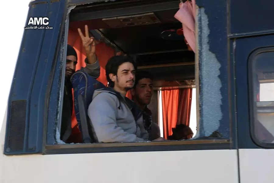 دخلت حافلات تقل الدفعة الثانية والثالثة من جرحى وأهالي مدينة دوما إلى مدينة الباب بالريف الشرقي، فيما انطلقت دفعة جديدة من مدينة دوما باتجاه الشمال السوري.