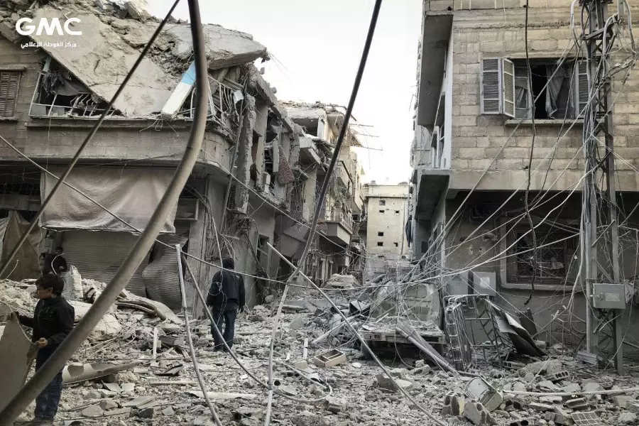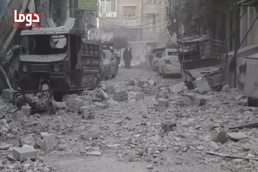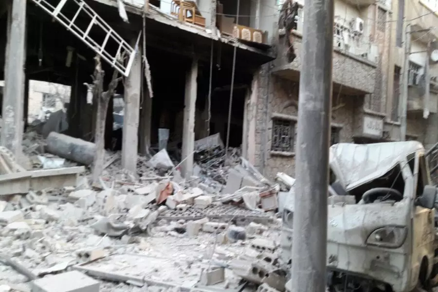 يواصل نظام الأسد وحليفه الروسي قصف مدن وبلدات الغوطة الشرقية المحاصرة بكافة أنواع الأسلحة، إذ تعرضت مدينة دوما لقصف من الطيران الحربي والمروحي بعشرات بالصواريخ والبراميل المتفجرة، بالتزامن مع قصف بالصواريخ المحملة بمادة الفوسفور المحرمة دوليا وقذائف المدفعية، ما أدى لسقوط 7 شهداء والعديد من الجرحى، وتعرضت مدينة عربين لقصف جوي من الطيران الحربي والمروحي، حيث استهدفت إحدى الغارات ملجأً يختبئ فيه المدنيين بشكل مباشر، ما أدى لارتكاب مجزرة راح ضحيتها 17 شهيدا "15 طفلا وامرأتين" وعشرات الجرحى، فيما تم استهداف مدينة حرستا بصواريخ الطائرات الحربية وصواريخ الـ "أرض – أرض" وبقذائف المدفعية، ما أدى لسقوط شهيدين وجرحى، وتعرضت بلدة عين ترما لقصف عشوائي أدى لسقوط شهيدين، كما سقط جرحى وحدثت أضرار مادية جراء قصف عنيف طال مدينة زملكا وبلدة حزة.