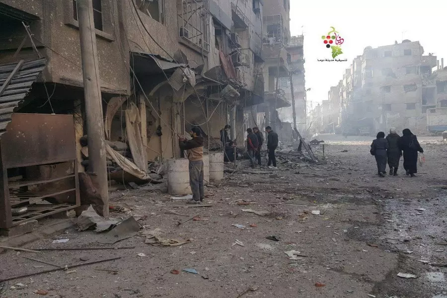 شن الطيران الحربي غارات جوية ترافقت مع قصف بصواريخ الفيل المدمرة وعشرات القذائف والصواريخ استهدفت مدن دوما وحرستا وعربين وسقبا وبلدات مسرابا وجسرين وكفربطنا وحوش الصالحية، ما أدى لسقوط شهيد وجرحى في صفوف المدنيين.