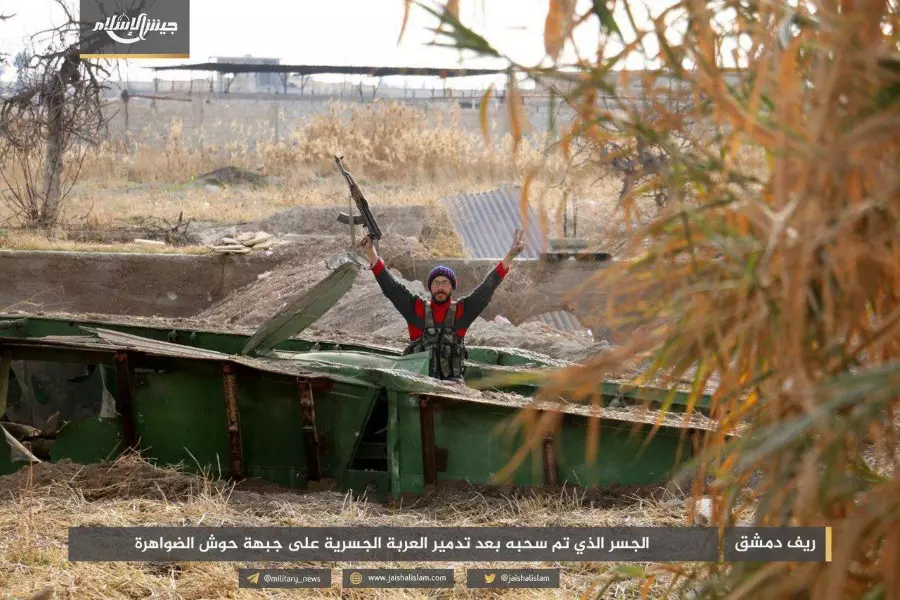 اشتباكات عنيفة بين جيش الإسلام وقوات الأسد في جبهات حوش الضواهرة بالغوطة الشرقية، تمكن فيها الثوار من إغتنام جسر متنقّل وضعته عربة روسية (من طراز MT55) على الخندق المائي المحيط بجبهات شرق الغوطة.