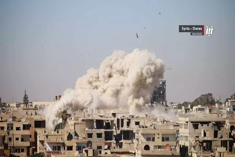 شن الطيران الحربي أكثر من 30 غارة جوية على أحياء درعا البلد ومخيم درعا وأيضا حي طريق السد، وألقت المروحيات أكثر من 80 برميل متفجر، بينما قامت قوات الأسد بقصف منازل المدنيين بأكثر من 80 صاروخ فيل شديد التدمير، بالإضافة لعشرات القذائف والصواريخ، وخلف ذلك القصف العشوائي دمارا كبيرا في المنازل والممتلكات، دون تسجيل أي إصابات بين المدنيين، وذلك بسبب خلو أحياء المدينة المحررة تقريبا من تواجد المدنيين الذين نزحوا منذ أكثر من 4 أشهر إلى السهول والمزارع.