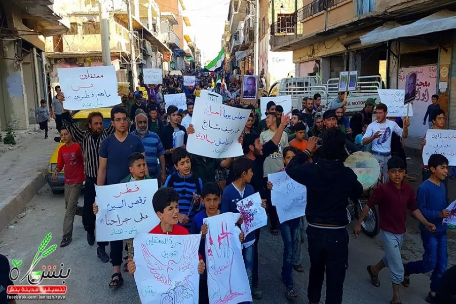 استهدفت الطائرات الروسية سوقا شعبية وسط مدينة خان شيخون خلفت لغاية اللحظة 6 شهداء بينهم طفلين وعشرات الجرحى، كما أغارت الطائرات الحربية الروسية المجرمة على بلدات ركايا سجنة والنقير وكفرسجنة ومعربليت والطريق الواصل بين (النيرب-أريحا) خلفت مزيدا من الجرحى بين المدنيين ودمارا كبيرا في المناطق المستهدفة.