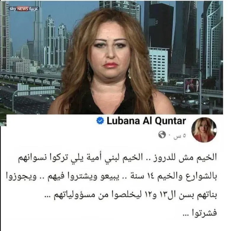وقالت بلهجة عنصرية إن “الخيام ليست للدروز بل لبني أمية الذين تركوا نساءهم 14 سنة يبيعون ويشترون بهن، ويزوجون بناتهم في سن الثانية عشرة والثالثة عشرة هرباً من المسؤولية”، وفق تعبيرها، ما اعتبره ناشطون تحريضاً على التفرقة وإساءة صريحة لمعاناة المدنيين.