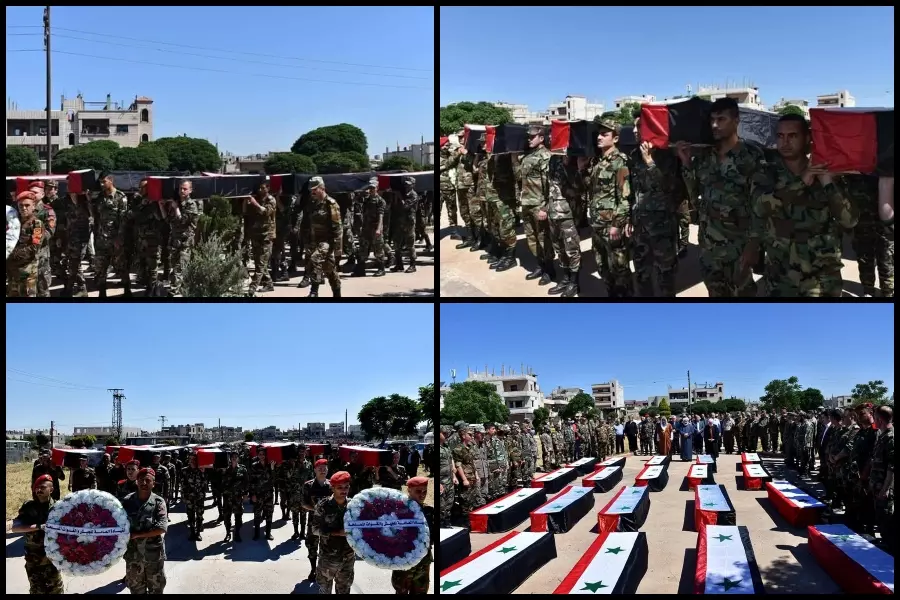 قتلوا بأرياف إدلب وحماة وحمص .. النظام يشيع 20 عنصرا مجهولي الهوية وسط سوريا