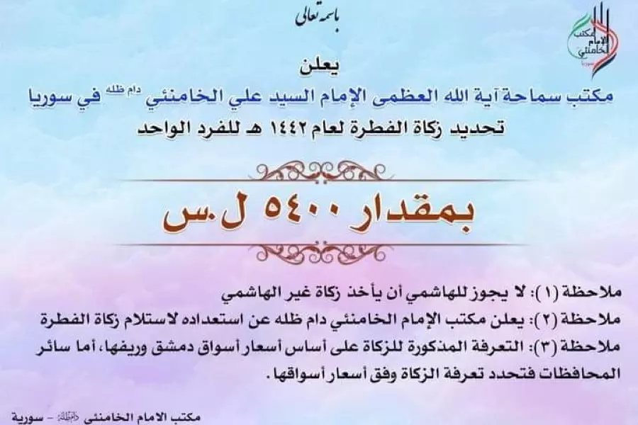 "الخامنئي" يخالف نظام الأسد بتحديد زكاة الفطر في سوريا