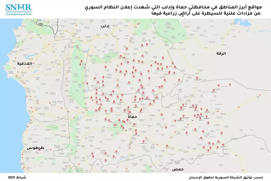 الشبكة السورية: المزادات العلنية لأراضي المشردين قسريا أسلوب إضافي للنظام للاستيلاء على ممتلكات معارضيه