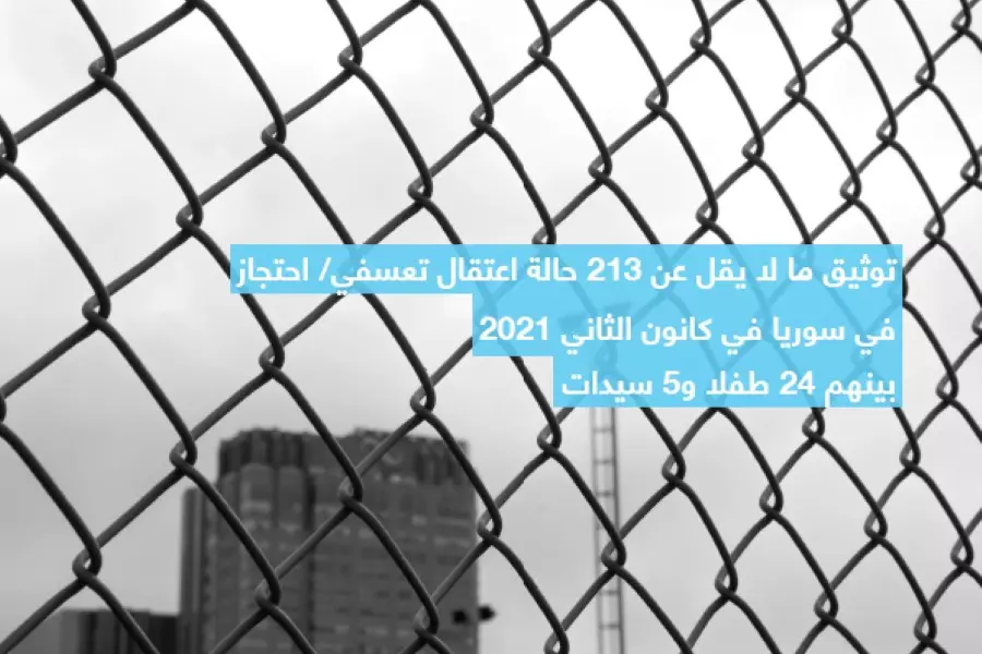 تقرير حقوقي يوثق 213 حالة اعتقال تعسفي بسوريا في كانون الثاني 2021