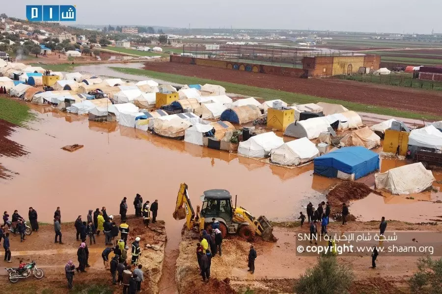 استمرار سقوط الأمطار يفاقم أوضاع قاطني الخيام شمال غربي سوريا